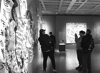 今年市民文化节举办的《春申墨客——周童耀书法艺术展》,日前在上海城市规划馆圆满落幕。这是上海举办的首个市民书法艺术展,展览打破以往单一悬挂书法字幅的做法,从艺术观赏角度出发,结合当代美术理念,增加了作品空间立体展示效果,还配合声光影像效果,把周童耀这位闵行本地市民书法家的书法作品,表现的大气别致和匠心独具,另外采用宣纸表现的立体书法装置作品,让整个书展更加丰富多彩和生动具象,延伸了传统书法的当代表现性,在一个月的展期中,引发参观者极大审美情趣,也让书法家们惊叹当下书法艺术的表现手法,吸引了万余名中外参观者前来参观,取得普及推广中国传统书法艺术的创新之举。图为市民参观展览的情景。