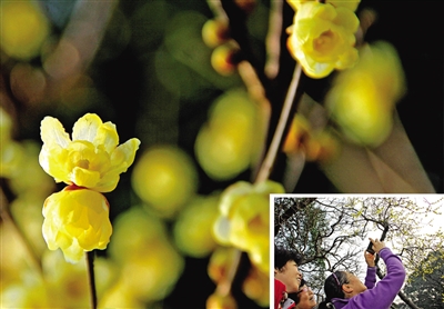 一场以展示经典、延续传统、弘扬文化的新春游园盛会日前在古猗园拉开帷幕。据了解,此次游园盛会将从2016年1月1日至2月22日,历时一个多月,并由元旦迎春赏花、新春民俗庙会和元宵欢乐游园三大主题节庆活动所组成。其中,精品国兰展、老桩菊花盆栽以及各式名花品种将成为市民游客迎春游园的一大看点。图为古猗园内,冰肌玉骨的腊梅已竞相绽放,吸引一批又一批的赏花游客驻足拍摄。 相关报道:梅兰竹菊为古猗园增添迎春美景
