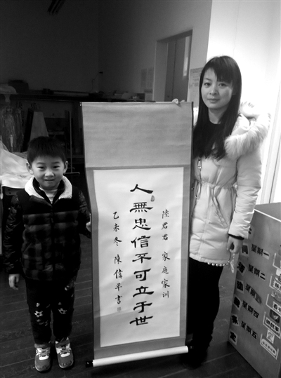 1月14日上午,赠轴活动共持续了一个多小时。150名学生家长领到家训书法作品后,个个爱不释手,表示一定会将作品悬挂在家中,时时勉励自己和孩子。