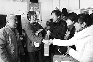 “谢谢!谢谢周场长,谢谢……”七十多岁的钮大妈从上钢集贸市场周耀明场长手中接过牛奶、饼干、芝麻糊等慰问品时,高兴得连声道谢。日前,上钢集贸市场场长周耀明偕同经营户代表谢雅丽等走访了上钢社区德州一村、上南花城居民区,社区癌症俱乐部,以及社区中的部分老劳模等,向居民区独居老人、老劳模代表、癌症俱乐部代表等四十多人赠送了牛奶以及慰问金,向老人们新年问好。这些慰问金来自上钢集贸市场广大经营户的爱心捐款。周场长说,春节前,把市场经营户的爱心捐款,直接送到菜场所属居民小区的困难老人手中,他们已坚持多年了。今年,爱心捐款更是得到了广大经营户的支持,《通知》发出去第二天,就收到募捐款18000多元。