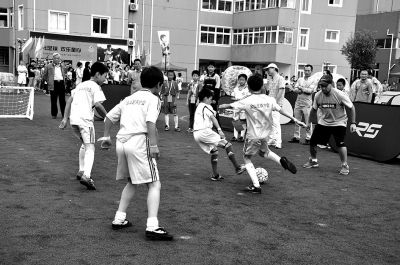 日前,在这10所试点学校之一的金山区第一实验小学隆重举行了以“阳光足球、欢乐童心”为主题的亲子足球嘉年华活动。活动项目有足球游戏体验、足球课程体验、足球训练体验等。参加这次活动的共有金山区6所小学和4所幼儿园的140多对亲子。4名来自欧美的外教体育教师在嘉年华活动现场既当教练又当裁判,使小足球队员充分体验到足球运动带来的乐趣。现场一位小朋友悄悄告诉笔者,长大后他想当足球运动员。