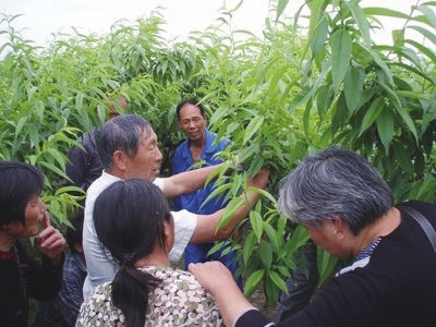 疏枝。当新梢长达30厘米时,就可根据其生长势、粗度、部位等判断枝条的好坏与性质,选留位置适宜的强壮枝,疏去竞争枝、徒长枝、细弱枝、密生枝、直立枝和下垂枝。果实采收后,疏除一些密挤的多年生枝、当年生枝、背上或外围的一些旺枝。