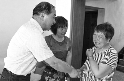 近日,金山区枫泾小学四年级学生项昕旸被查出患有重病,需接受手术,这需要很大一笔费用,而孩子的奶奶也在3年前得了重病。接连打击犹如雪上加霜,项昕旸妈妈无奈之下在网上发布求救信息。一时间,爱的力量不断向这个不幸的家庭汇聚,短短几天收到各方捐款达34万元。图为枫泾邮政支局领导和项昕旸所在的兴塔村领导闻讯后赶到项家奉献爱心。 通讯员 庄毅 摄/文