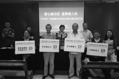 居住在上钢地区80多位“两弹一星”老功臣、革命伤残军人、烈士家属等代表,领到了由浦东新区老年家庭服务中心颁发的“脱排油烟机清洗保洁卡”、“居室保洁卡”、“足疗保健卡”和“空调清洗卡”。他们凭借手中的卡,可以享受浦东新区老年家庭服务中心的服务员上门免费为你清洗脱排油烟机、空调、擦玻璃窗、家庭保洁等,也可上足疗店享受免费的足疗服务。