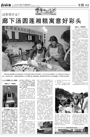 蒸糕,是沪郊许多地方的过年传统。蒸糕,寓意“步步高升”、“蒸蒸日上”。沪郊每个地方的糕,在做法、形状、口味和名称上各有不同。金山廊下镇,莲湘糕堪称最有名气的特产之一,廊下中华村“莲湘糕专卖店”的陈阿姨则是远近闻名的做糕高手。