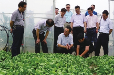 金山区是本市蔬菜生产重点区域之一,承担着4.7万亩蔬菜、2.7万亩绿叶菜和19万吨绿叶菜上市量的任务。7月10日,市委农办、市农委主任张国坤,市农委总经济师王国忠及综合发展处、蔬菜办、种植业办、研究室、办公室等相关处室负责人一行前往金山区开太鱼文化发展有限公司、阿林果业专业合作社、博众蔬菜种植专业合作社、施泉葡萄专业合作社、蟠桃研究所、金山区蔬菜研发中心等单位进行调研,实地查看了各基地的生产和防汛工作情况,并慰问了在基地劳作的菜农。金山区委副书记、区长胡卫国,区委副书记程鹏,副区长吴瑞弟,区农委主任张亚军等陪同调研。