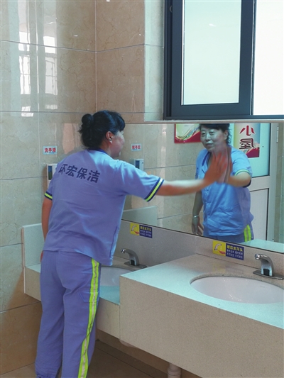 黄忠介绍,他们有一套严格的保洁制度,对物品的设置摆放、卫生管理都有明确规定,要求保洁员必须严格执行,做到“厕所无异味、地面无水渍、便池无积垢、门窗无灰尘、档板无涂鸦、室内无蜘蛛网等。”与此同时,环宏保洁公司巡查队每天对公厕进行日常检查,确保公厕整洁、服务到位。