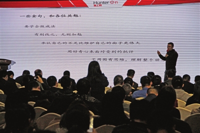 据了解,为了助力参赛企业,宝山众创联盟此次还专门汇聚了区内各众创孵化载体及社会服务机构,以多种形式为参赛企业与团队提供分享大赛经验的机会,助其一臂之力。(图为园区企业猎上网的联合创始人、国内资深猎头人马雄二正在结合自身创业经历,在宝山赛区启动仪式现场为参赛者传经送宝,与大家分享一个创业者的心路。)