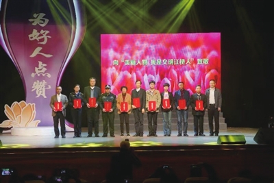 本报讯 “搀一搀、扶一扶、帮一帮”,只要心中有爱,点滴行动就能化作志愿力量。12月3日,在国际志愿者日即将来临之际,“为好人点赞”第四届“美丽人物·我是文明江桥人”颁奖仪式暨2018年国际志愿者日主题活动在嘉定江桥镇文体中心举行。“坚持阅读拓视野,致力宣讲获好评”的乐学之星傅佳驹等10位先进个人,“社会责任必履行,公益服务展风采”的星火村“儒林”志愿服务队等10家先进集体获得荣誉表彰。嘉定区委常委、宣传部部长顾惠文,江桥镇党政班子领导,受表彰的先进集体、先进个人,以及志愿者代表等出席活动。