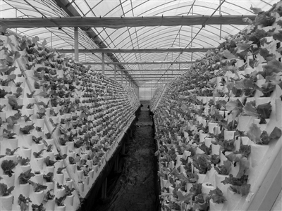 在青浦盈朱路南侧,新建了一片白色塑料连栋大棚,这就是陆守诠植物空间城的新基地。陆守诠带着我们走进了大棚,这是一块刚拆违过的土地,地上满是高低不平的泥土和砖块,大棚就建在这块土地上,面积足有五六亩。放眼望去,大棚里放满了V字型的蔬菜立体栽培床,大约有2米高,10米左右长,模板上一穴穴生菜已经放叶展绿。陆守诠介绍说,这种V耘栽培模式的好处在于可以充分利用农村的土地资源。因为这种模式栽培蔬菜不依赖于土壤,而是通过倒“V”型的立体栽培床,大大提高了单位面积的土地利用率,一般是传统地面栽培面积的5-6倍,一亩地配一个雾化发生器,半个立式空调大小,占地面积很小。因此,无论在大田,还是在城镇周围,特别是零星拆违后的土地进行复垦,是最合适的栽培模式。此外它有效地提高了农作物产量。据陆总介绍,V耘栽培是一个独特的培植和栽种方法,把根系包裹在整个雾气之中。雾化发生器制造小于5微米的水粒子,因而避免传统的高压水弥雾产生的冲击,能渗透整个细微的空间而不会损伤植物,能智能控制植物生长,产量是传统的10倍以上,亩产可达8万~10万斤。三是达到安全生产,提高了农产品的质量水平。由于V耘立体栽培隔离了不良土壤,从源头上防止病原菌的入侵,无农药的污染,无传统化肥的污染,无重金属的污染,基本无病虫害。通过工厂化种植,人工精准调配种植所需要的营养成分,水肥一体化,生产出高品质绿色的产品。产品经国家权威部门检测,无农残和重金属污染;蔬菜的VC的含量是传统种植菜的3~4倍,并符合欧盟的出口标准。
