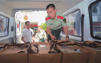 ■7月31日,上海花厅果林发展有限公司、越亚农产品种植专业合作社、尚宇果蔬专业合作社、大河蔬果专业合作社、御郊农业专业合作社代表上海果农慰问一线执勤的武警战士,送上合作社生产的水蜜桃、梨、葡萄等优质果品。>>>详见4版