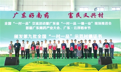 开幕式现场颁发全国“一村一品”示范村镇证书,以及全国“一村一品”广东省示范村镇、全国名特优新农产品广东省名录、广东省“一村一品、一镇一业”专业镇证书,并举行了南药重大项目签约仪式。