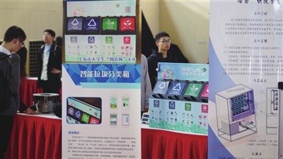 在今年举行的上海市大学生“创造杯”大赛中,一款集垃圾类别分析、自动操作设计、投放行为可追溯等功能于一体的智能垃圾箱得到了大赛评委会的青睐,获得了机械电子类作品一等奖。这款智能垃圾箱的发明者是来自嘉定区上海科学技术职业学院的学生创客团队,他们希望这样的设计能让垃圾分类更精确、更便利。