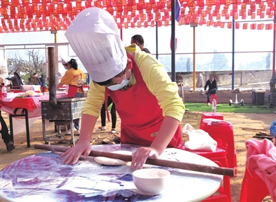 架上铁锅、生起柴火,比赛现场别有农家风情。别看“掌勺大厨”们的平均年龄只有10岁,穿上围裙、戴上口罩和高高的厨师帽,煎、炒、煸、煮、炖,颇有架势。砧板上刀起刀落,灶台前热气腾腾,不会儿,油泼大虾、荠菜豆腐羹、醋熘白菜……一道道佳肴新鲜出炉。
