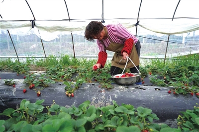 满满一盆鲜红欲滴的草莓,盛成仔细挑选、小心拿起。“明天是元宵节,基地里的草莓都要拿到市区的销售点去卖。”盛成告诉记者,五年前,他就在八万人体育场世纪联华超市门口租下一个销售柜台。每年草莓季,他每天都带着新鲜采摘的草莓来到柜台销售。五年来,他的“鑫品美”草莓品质优良,“圈粉”无数,为他积累了一批忠实客户,他的销售点也扩大至普陀区中环百联店。