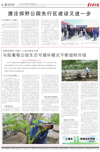 位于上海市嘉定区的马陆葡萄公园2005年建园之初就提出了“做一流农产品,从维护生态环境开始”的口号,转变了当时葡萄生产普遍追求产量的观念,开始探索绿色生产技术。2019年开展上海市生态循环农业示范创建工作以来,基地的生态可循环有机栽培模式与体系仍在不断提档升级。