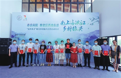 启动仪式上,西渡街道相关领导为市农科院13名挂职“农科英才”颁发证书, 同时,市农科院领导向南渡村、北新村科技示范基地授牌。未来,西渡街道与市农科院将继续加强合作,为奉贤打响“三园一总部”品牌,助力西渡街道乡村振兴注入人才“活水”。