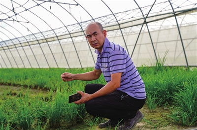 盛夏时节,徐俊锋每天雷打不动下到田间地头查看韭菜长势、安排浇水事宜。看着工人们有条不紊地整地、起垄,栽下一棵棵炼好的韭菜苗,徐俊锋也会一起忙碌。长时间的日照,他的脸庞和手臂被晒得黝黑,很难想象眼前这位合作社负责人曾是一名企业高管。