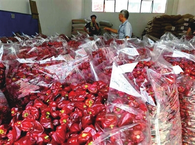 后来,陈顺国在农贸市场租了100平方米的门面,一年赚4万至5万元。现在,他的公司在杭瑞高速虾子站出口附近的中国辣椒城承租700多平方米物业,涵盖加工区、交易区、库房、办公区,每年经手的辣椒超过2000吨,带动发展6万亩辣椒基地,其中在甘肃省有1.2万亩。
