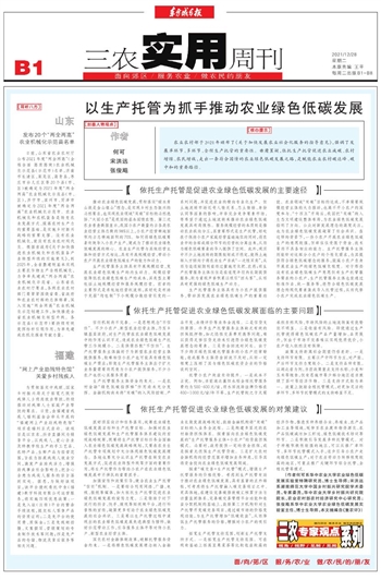 以生产托管为抓手推动农业绿色低碳发展