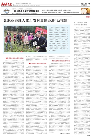 村庄发展的专业化分工要求。过去不少村干部既要负责村级日常事务管理又要负责发展集体经济,导致什么事都负责却又什么事都不“精”。近期,南京、苏州、杭州等地探索事经分离,赋予集体经济组织独立经营职能,成效明显。这是村级事务管理和经济发展的分工。做大做强村级集体经济需要较高的资源整合能力和市场参与能力。聘用职业经理人做农村集体经济的市场“引路人”,可以达成集体资源资产经营权细分与企业家人力资本的匹配,释放专业化发展集体经济的分工效能。