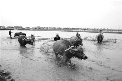 历史上,上海市郊农业生产发达,上海水牛适应性强、役用性能好,生产潜力大,一直是这里主要“劳动生产力”。“上海水牛1岁半,就可进行调教使役,一般2~3天就能学会耕地;成年牛一般每天可使役8小时,可耕水田4~6亩、旱地6~8亩,最高可耕10亩,犁地深度14~20厘米;饲养水平较好时,水牛20余岁时仍有耕地能力。”市特种养殖业行业协会会长周志强介绍。