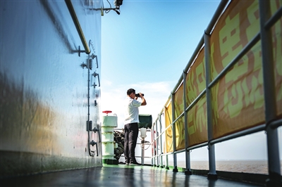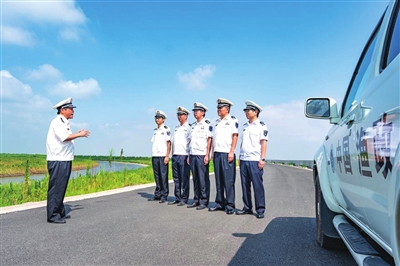 ④市农业农村委执法总队执法人员正在观察江面情况。