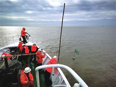 ③市农业农村委执法总队执法人员正在进行清理违规网具工作。