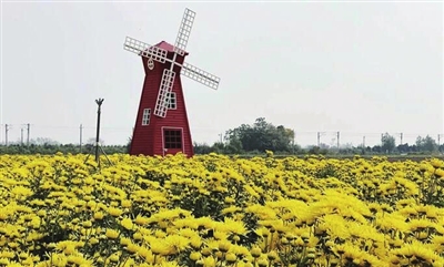 在宫集镇育才村菊花种植基地,百余亩菊花竞相绽放,种植大户王涛正忙着指导花农采摘、打包、装箱,一派繁忙的景象。