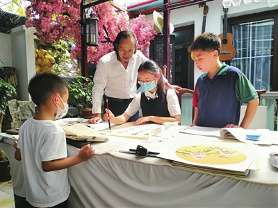 在打造“农民文化庭院”中,王银标不惜自己家用空间,对老屋进行改造,并在房屋的造型设计、视觉艺术,功能室布置上均动足了心思,从2021年起,投资几十万元,改造了原有的“三开间两披檐”的老屋,还打造了一个60多平方米的“猪棚间”,支撑起在远东村独一无二的“农民文化庭院”,其外观造型独特,江南民居气息与传统建筑风格相融,室内设绘画工作室、作品展示室、美术辅导室,免费吸引了20多位老少书画爱好者前来参与培训。王银标还乐于公益,今年春天,他兴致勃勃地带领一批学生到惠南地铁东站作美术辅导写生,记录沪郊大地美丽的乡野风情……