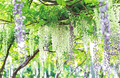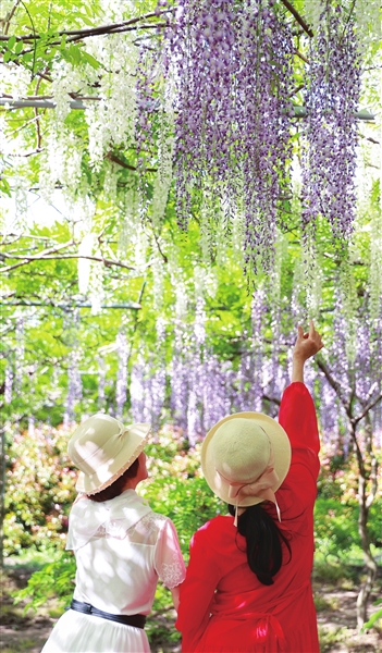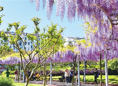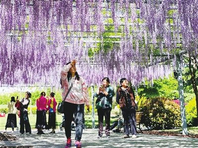 近日,紫藤进入盛花期,前来赏花的市民游客络绎不绝。