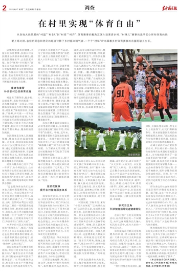 以体育促进农民健康,丰富乡村体育赛事,加强乡村全民健身公共服务体系建设,提高农民健康水平,让农民更幸福。如今“体育+乡村振兴”画卷正在大江南北徐徐展开,充分发挥体育的多元价值和综合功能,为推动乡村振兴取得新进展、农业农村现代化迈上新台阶、农村居民获得感、幸福感不断提升提供有力支撑。