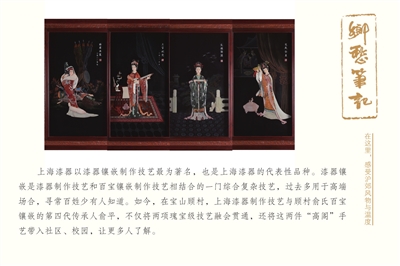 前不久,位于宝山顾村镇党群服务中心的漆石坊非遗体验基地正式对外开放,非遗传承人俞平将在那里为市民近距离感受这两项非遗魅力搭建全新平台。