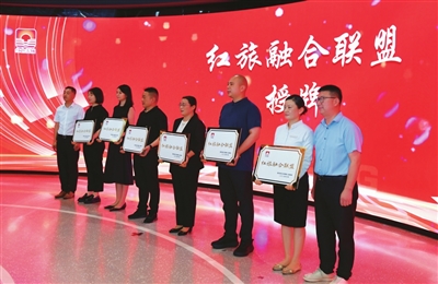 活动现场,泥城专属IP形象“妮妮”和“大城”化身红色导游,带领大家踏上“红色文旅融合”之旅。红色文旅新路线将吸引更多游客走进泥城、了解泥城、爱上泥城,在潜移默化中接受红色精神的滋养。而由红色泥城主题馆、公平村、千绿蔬果基地、野食派、妙有堂艺术茶空间、乡育南泥湾等6家单位所组建的“红旅融合联盟”将为今后区域“农文旅商体展”一体化发展注入更多新动能。