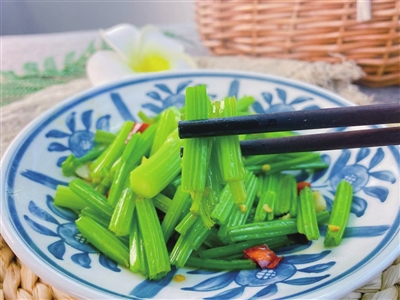 水芹在我国食用历史悠久,古籍中的“芹”一般指的就是它。水芹主产于长江中下游地区,江南的特产蔬菜“水八仙”里就有它。若培育水芹时像种韭黄一样遮光处理,可以长出洁白柔嫩的“芹芽”。古人虽然觉得水芹好吃,却对它有所忌惮,医药典籍里记载了人们采摘水芹食用后发生腹痛,甚至危及生命的情况,其实很可能是吃了与水芹外形较为相似、同样生长在水边沼泽的毒芹或毛茛科植物石龙芮,这两种植物都含有毒素,这也使得采食野生水芹具有一定的风险。