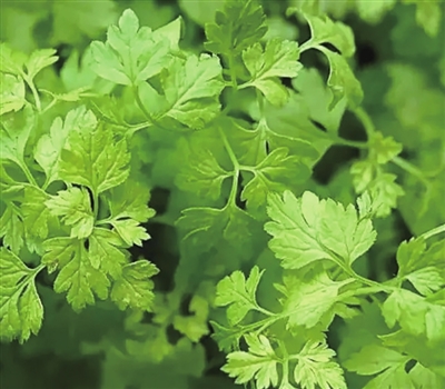 欧芹别名香芹,是伞形科欧芹属植物。它有平叶和皱叶两种,西餐里常用来调味增香,皱叶欧芹还是常见的盘中装饰。欧芹还有一种食用根变种,叫根欧芹,外形像掉了色的胡萝卜。在东欧、中欧较为常见,主要用它做炖菜,但国内比较少见。